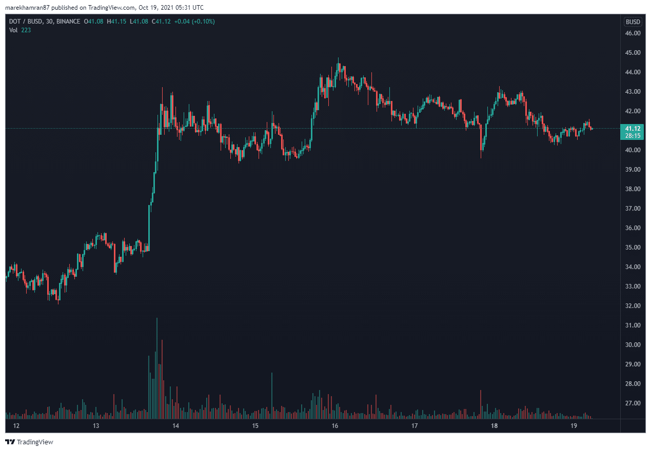 Spustenie parachainových aukcií bolo oznámené na 11. 11. 2021. Od oznámenia sa cena tokenu DOT vyšplhala za týždeň o viac ako 16 %.