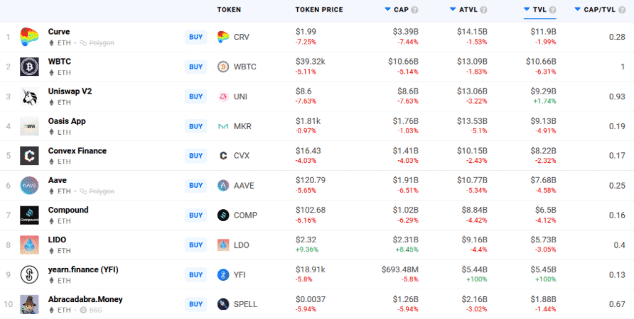 Trpí aj DeFi na báze Etherea. Osem z 10 najlepších projektov bolo za posledný mesiac v červenom z hľadiska celkovej uzamknutej hodnoty (TVL) a ceny tokenu.