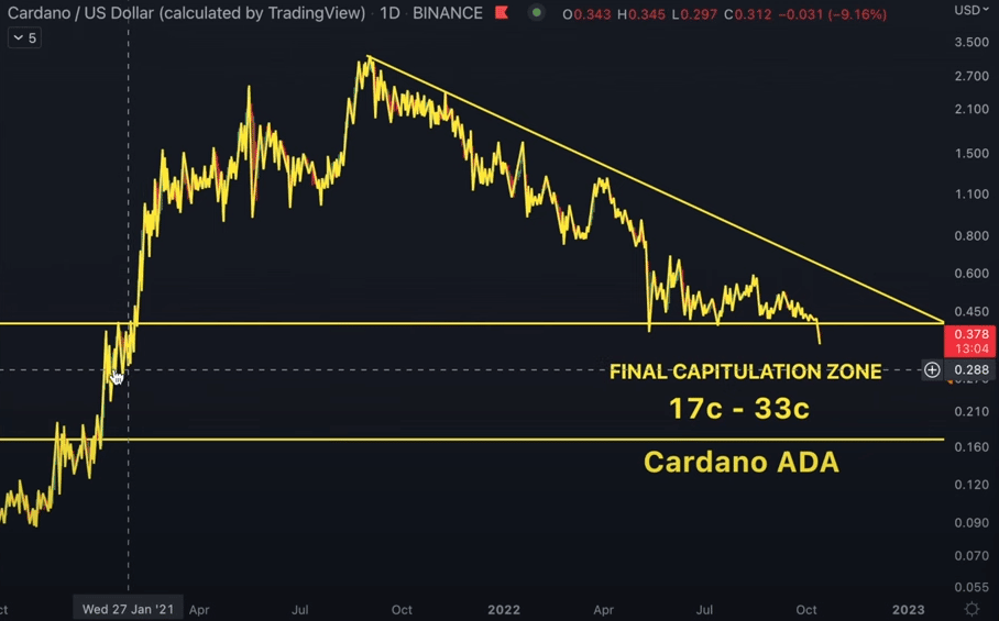 Populárny kryptomenový analytik Jason Pizzino vo svojej najnovšej relácii na YouTube uviedol, že sa v prípade ekosystému Cardano môžeme dočkať až 50 % prepadu. Aj napriek pozitívnym fundamentálnym výsledkom hrozí výpredaj, ak natívny token ADA neudrží kľúčovú úroveň podpory.
