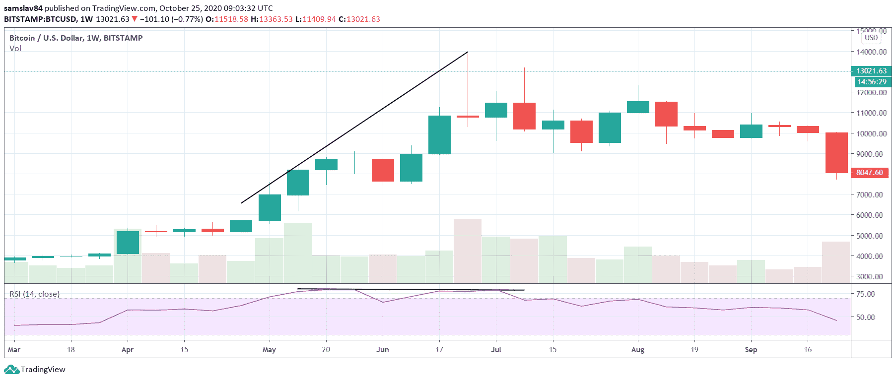 1W Bitcoin RSI divergencia