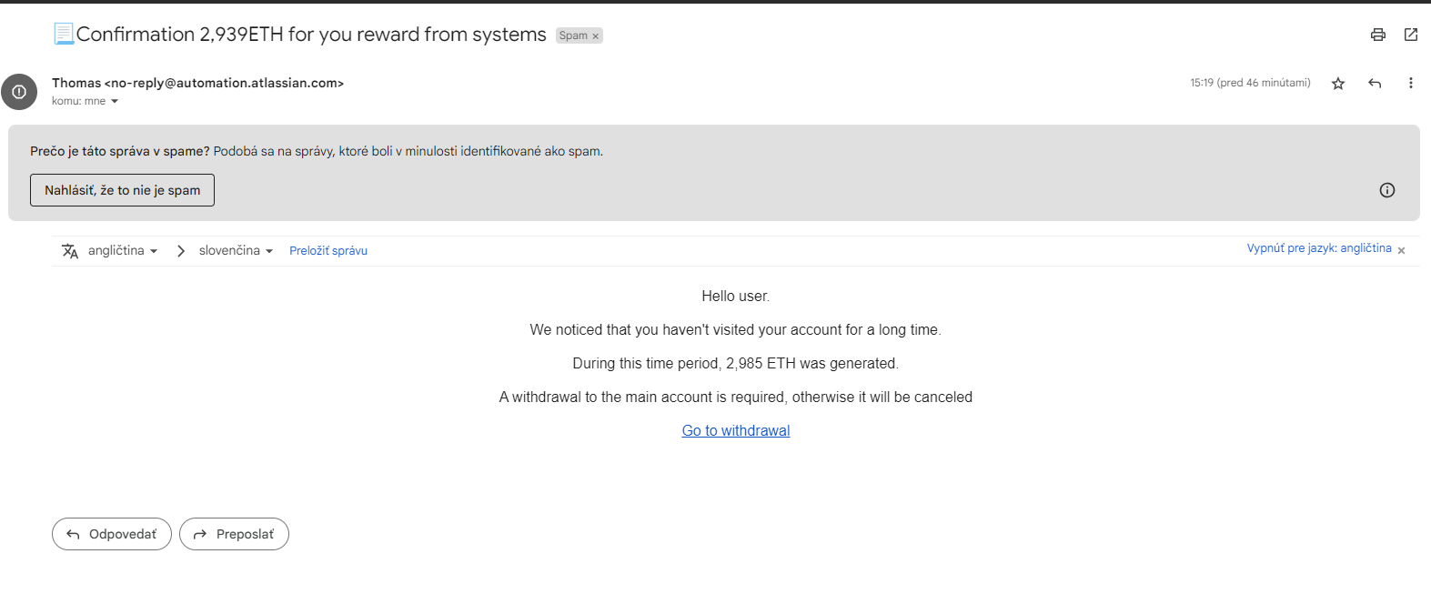Preto pokiaľ nečakáte napríklad mail od banky alebo kamaráta, tak skutočne nikdy nič neotvárajte. Najmä vtedy nie, ak by vás niekto lákal, že má pre vás 1 milión v bitcoine. Po stiahnutí vám hacker všetky údaje zmaže a pýta od vás výpalné. Ani po zaplatení vo väčšine prípadov sa ku súborom znovu nedostanete. Mail, ktorý vás núti niečo urobiť alebo stiahnuť môže vyzerať takto: