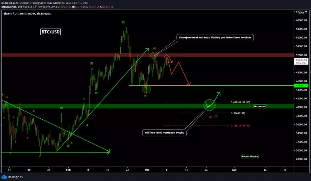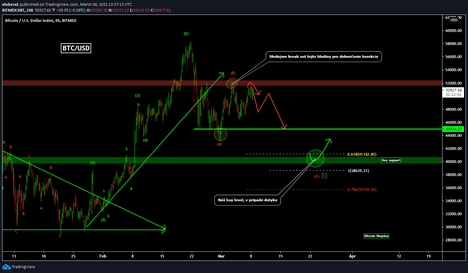 Bezpečná zóna sa nachádza nad 51 000 USD, kde sa nám tvorí takzvaná po break out zóna. V lepšej možnosti pre otvorenie obchodu na long potrebujeme Bitcoin vidieť práve nad touto hladinou. Vtedy by Bitcoinu už nemalo nič brániť v ceste na nové ATH a možno už aj na úrovne typu 80 000 USD, prípadne aj na komunitou veľmi obľúbenú „stovku“. Neočakávam dokonca ani zástavka na ATH, pretože na tejto hladine došlo zatiaľ iba k jednému zamietnutiu a teda nie je predpoklad tvorby rezistencie. O Bitcoine sa budeme baviť aj na dnešnom streame, kde vám rád uvítam.
