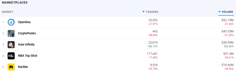 Rýchlo klesajúce ceny a aktivita na popredných trhoch NFT viedli mnohých k špekuláciám o spľasnutí bubliny. Aktívni používatelia sú zdrojom energie, ale charakter trhu s kryptomenami za posledné dva mesiace viedol k prudkému poklesu počtu používateľov.