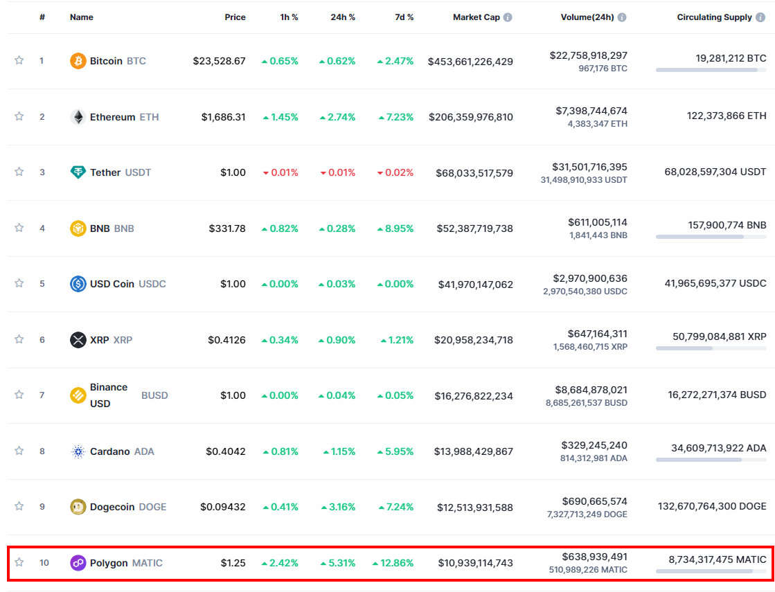 Sieť Polygon. Zdroj: CoinMarketCap