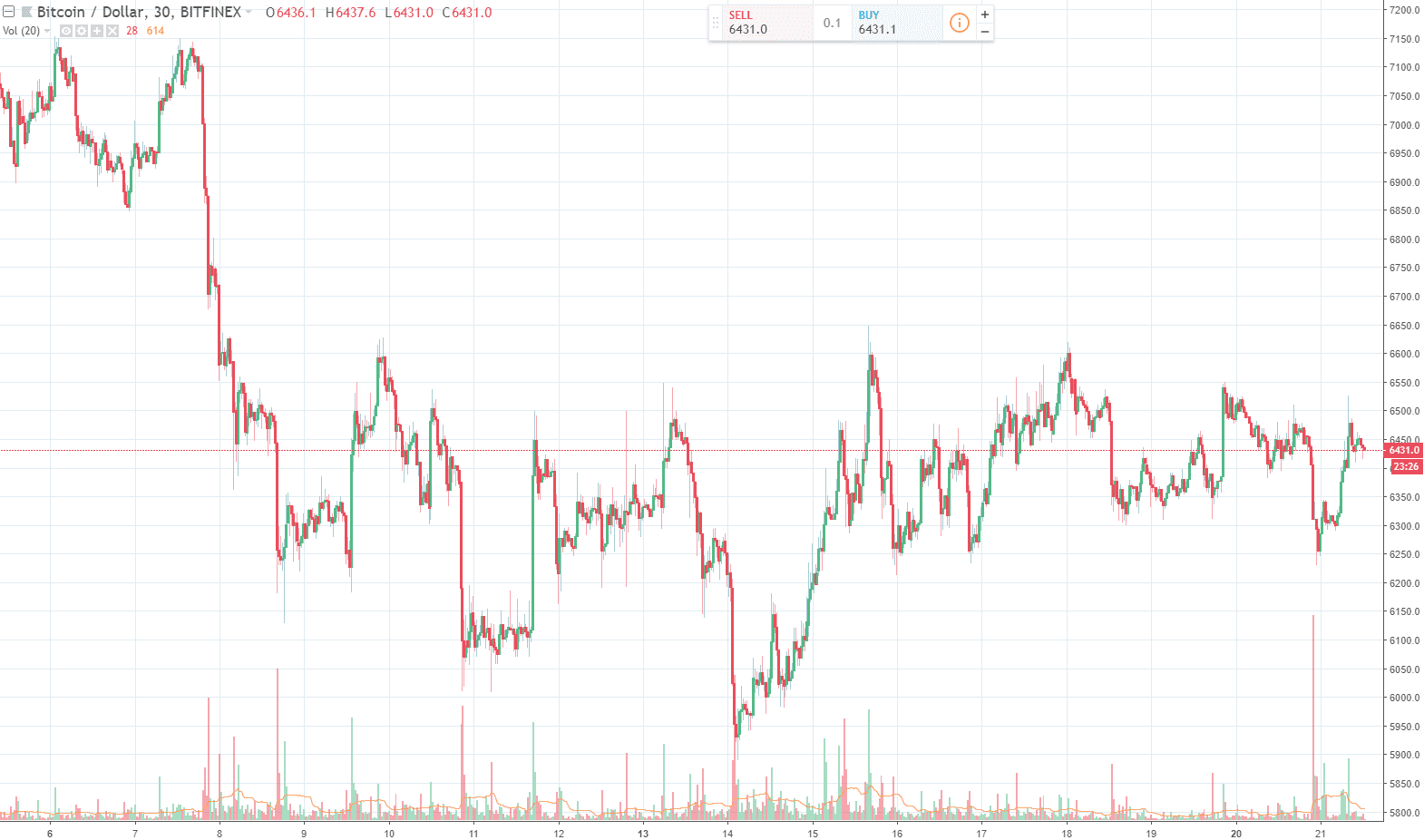 Dominancia zatiaľ rastie bez výraznejšej zmeny hodnoty Bitcoinu. 24h low – 6230 $ – dosiahol krátko po polnoci a high – 6526 $ – o ôsmej ráno. V čase písania tohto článku je na 6450 $. Oproti včerajšiemu dňu tak nezaznamenávame žiadnu zmenu. Na druhej strane altcoiny naďalej klesajú.