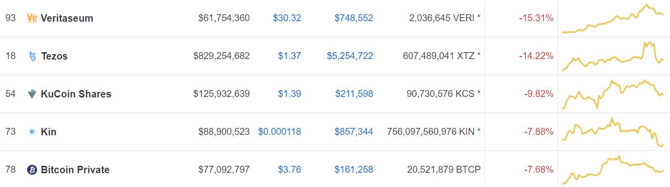 Na druhej strane spektra máme coiny, ktoré klesli o viac než desať percent. Prvé dve priečky obsadili včerajší rekordmani, ktorí zmazali prakticky všetky zisky z posledných 48 hodín.
