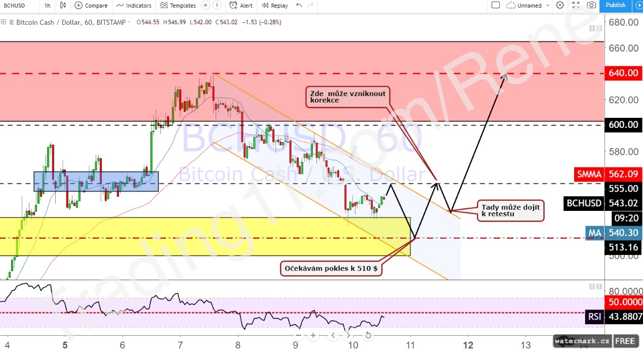 Kryptomena Bitcoin Cash robí tento mesiac skutočné divy. Behom niekoľkých dní sme boli svedkami prudkého rastu o cca 50 % a následného pádu. Momentálne sa tento coin obchoduje za ~530 $ a je dosť možné, že korekčný pohyb dosiahne hladinu 510 $, kde sa nachádza silný support.