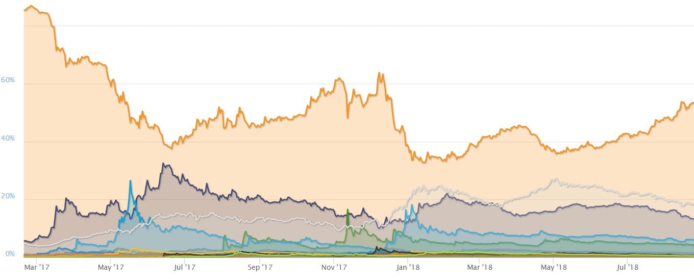 Index dominancie Bitcoinu sa dnes zvýšil na 53,7% čo nám jasne ukazuje, že ešte nie je čas na vstup do trhu s alternatívnymi kryptomenami.