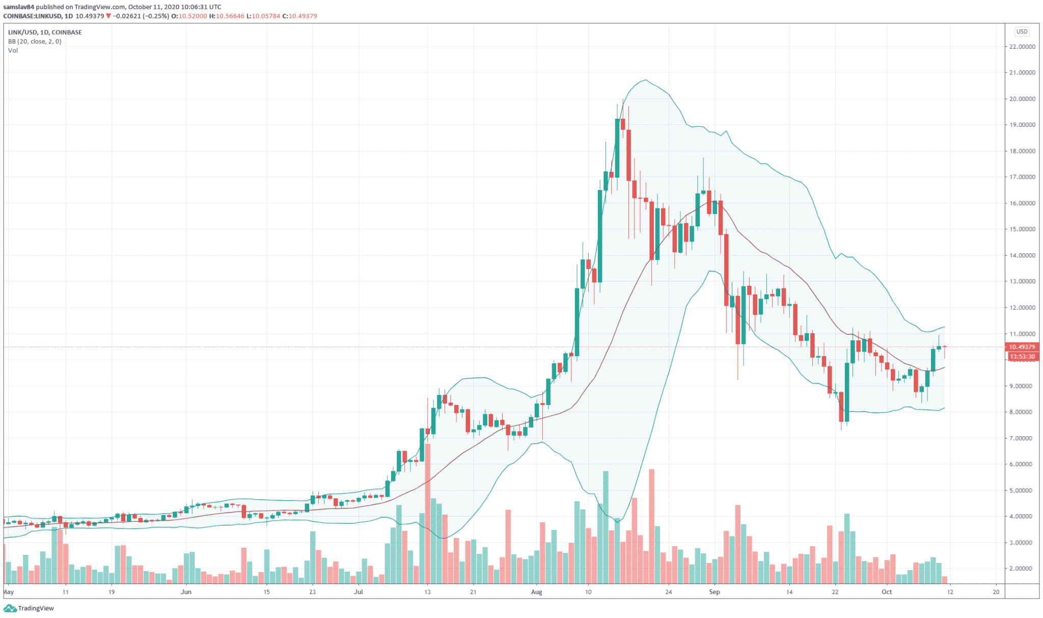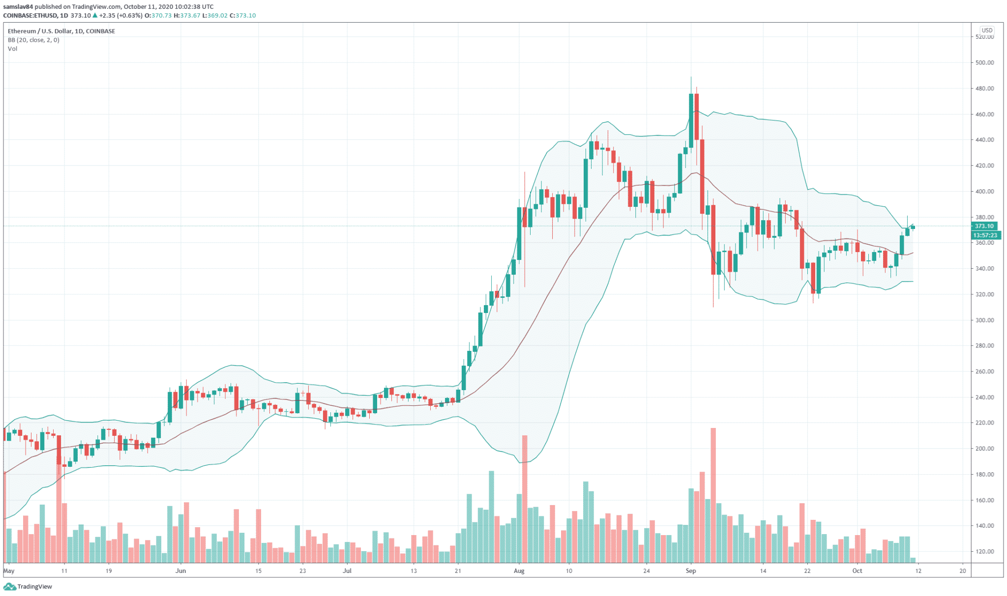 Bitcoin za posledný týždeň zaznamenal rast o viac než 7 %, čo pozitívne vplýva na trh s altcoinami. Ethereum (ETH) drží tempo a po 7% raste sa obchoduje za 375 $. Token XRP spravil takmer 10 % zisk, Chainlink (LINK) a Cardano (ADA) dokonca 12%.