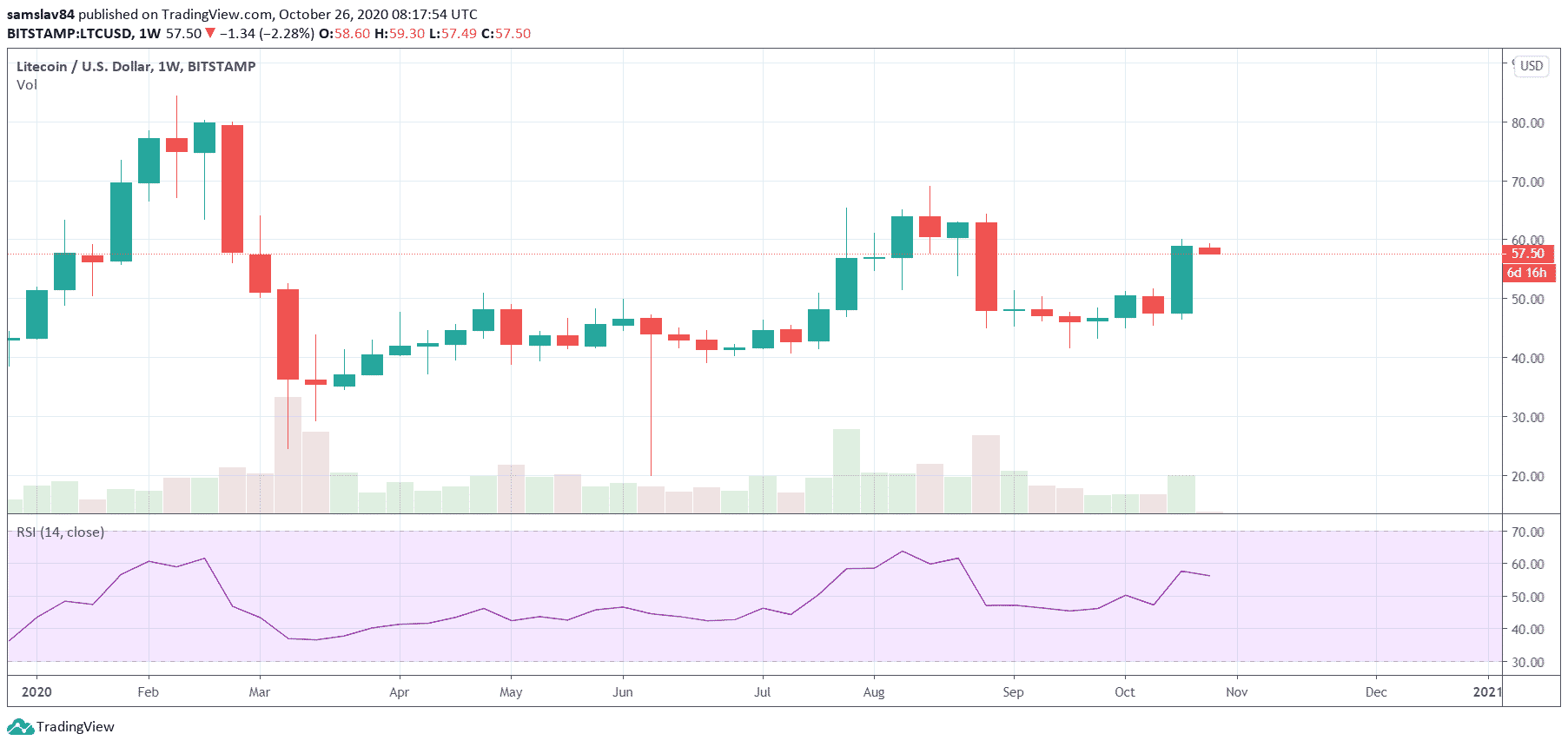 Prekvapil však Litecoin, ktorý sa KONEČNE zobudil a predviedol pumpu o 23%. To čakal iba málokto, ale v podstate bolo len otázkou času, kedy to príde. Stále je však na tom dosť biedne a neprekonal ani high z augusta tohto roka.