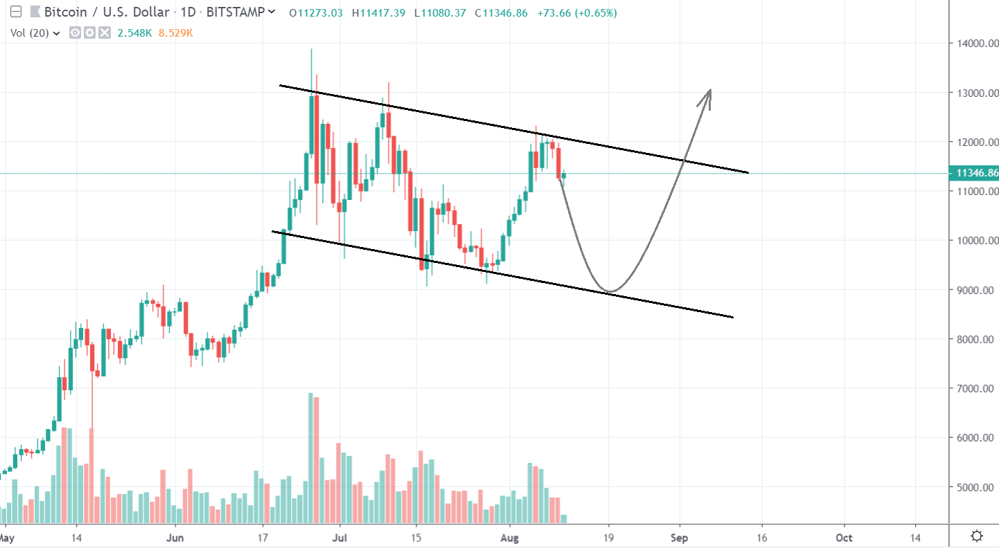 S tým súhlasí aj René, ktorý práve publikoval svoju vlastnú analýzu. Aj z nej vyplýva, že prepad na 11 000 $ je nevyhnutný.