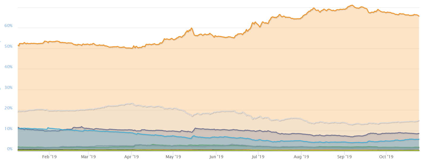 Správna odpoveď je – záleží to od situácie. Počas minulého roka aj napriek pádu Bitcoinu stúpala. V tomto prípade však pokračuje v poklese z tohtoročného high na úrovni 71 %. Aktuálne sa nachádza na 65,5 %. To naznačuje, že dnešná situácia sa oproti bear marketu z roku 2018 podstatne líši a altcoiny sú pripravené na rast.