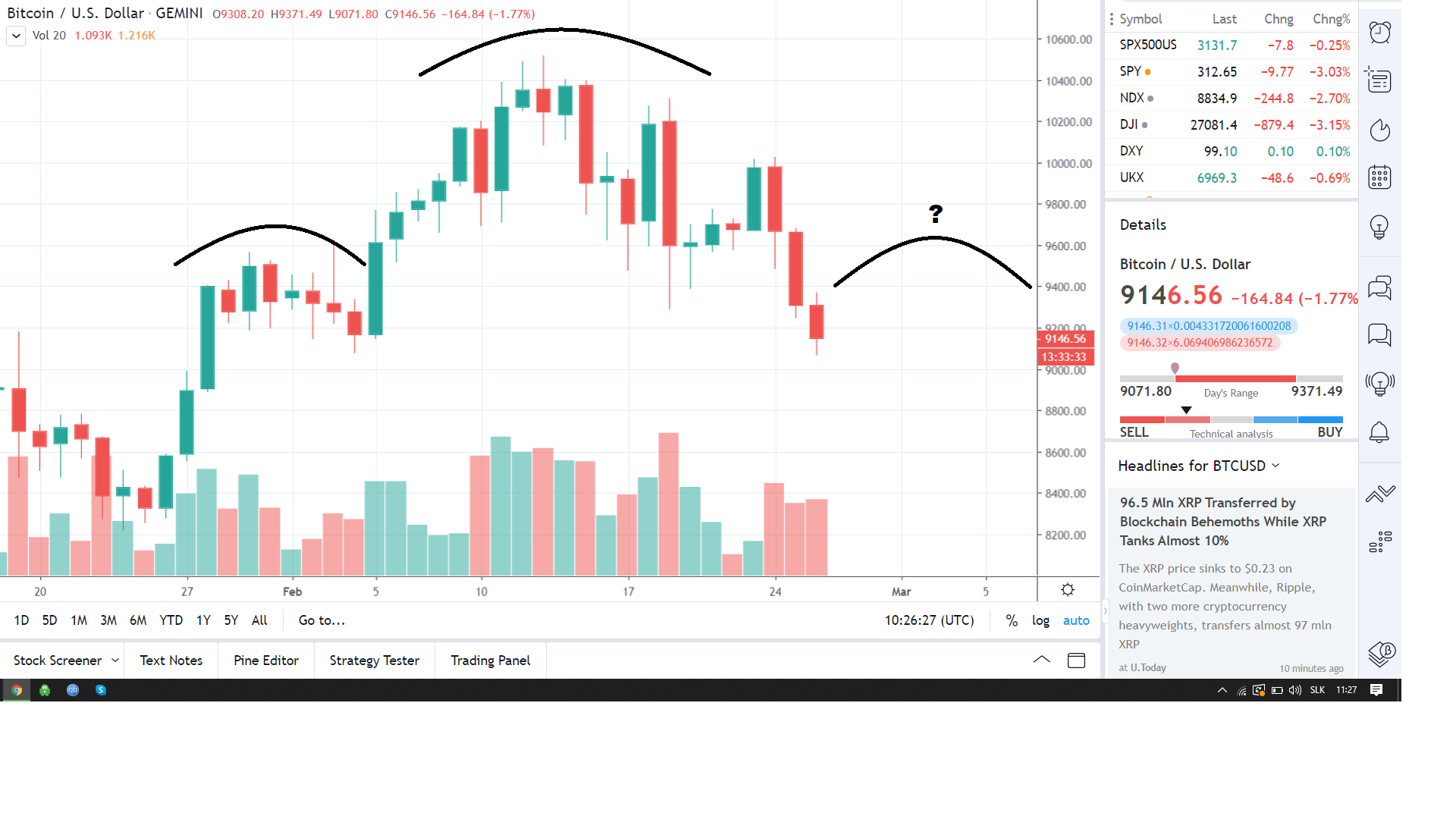 Trh s kryptomenami už tretí deň po sebe uniformne klesá. Bitcoin padol z pondelkových 10 000 $ na aktuálnych 9 100 $. Naše očakávania sa teda napĺňajú a korekcia pokračuje. V prípade Bitcoinu sa nedeje nič hrozné, i keď teraz klesá naozaj veľmi rýchlo. Aktuálne sa už však nachádza na relatívne silnom supporte, ktorý by ho mal aspoň niekoľko dní podržať.