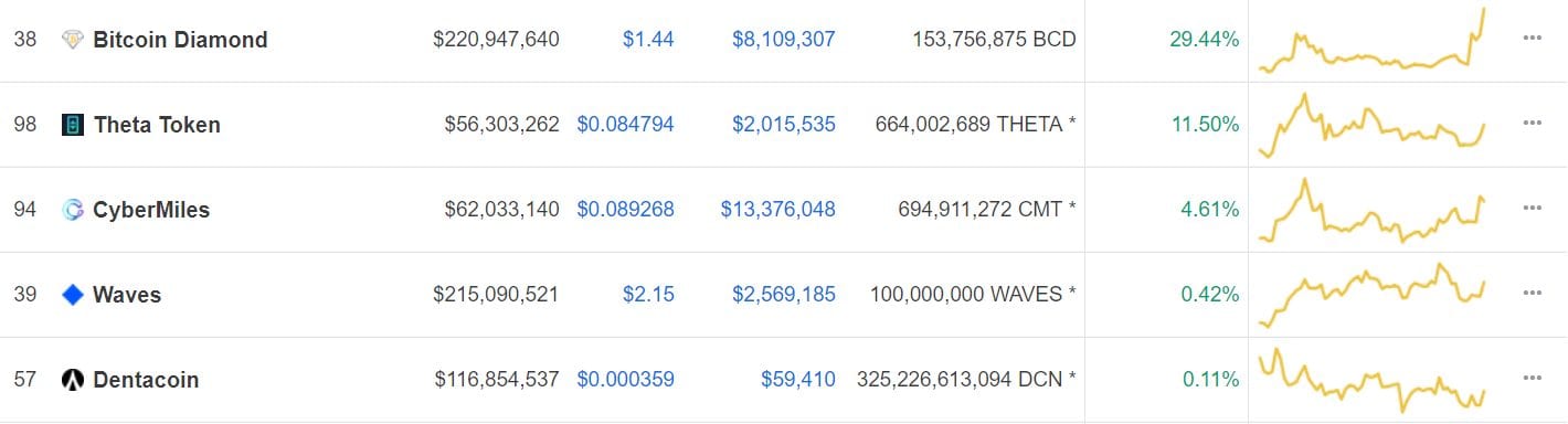 Medzi najziskovejšími kryptomenami sa dnes prekvapivo objavil aj fork Bitcoinu! Bitcoin Diamond spravil slušných 30%! Zajtra bude s veľkou pravdepodobnosťou medzi najstratovejšími coinami.