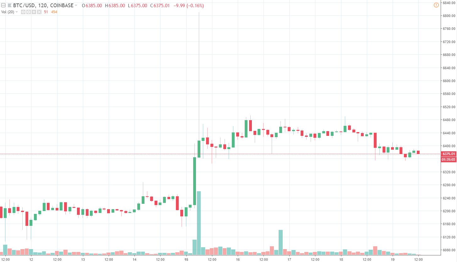 Cenové rozdiely medzi burzami sa už viac-menej vyrovnali. Priemerná cena Bitcoinu sa v čase písania tohto článku pohybuje v intervale 6440 – 6480 $. Z davu vytŕča iba Bitfinex, kde sa pohybujeme na 6580 $.