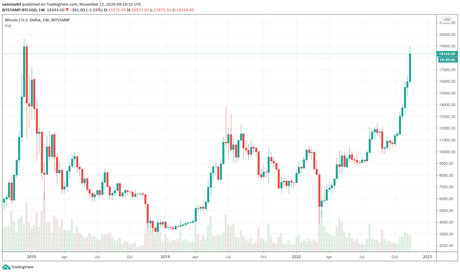 Bitcoin má po troch rokoch konečne šancu vytvoriť nové historické maximum. Včera ho zastavila okrúhla hladina 19 000 $. Čo sa stane, ako dosiahne 20 000 $? Takto bude vyzerať rok 2021 na trhu s kryptomenami. Zmení sa úplne všetko!