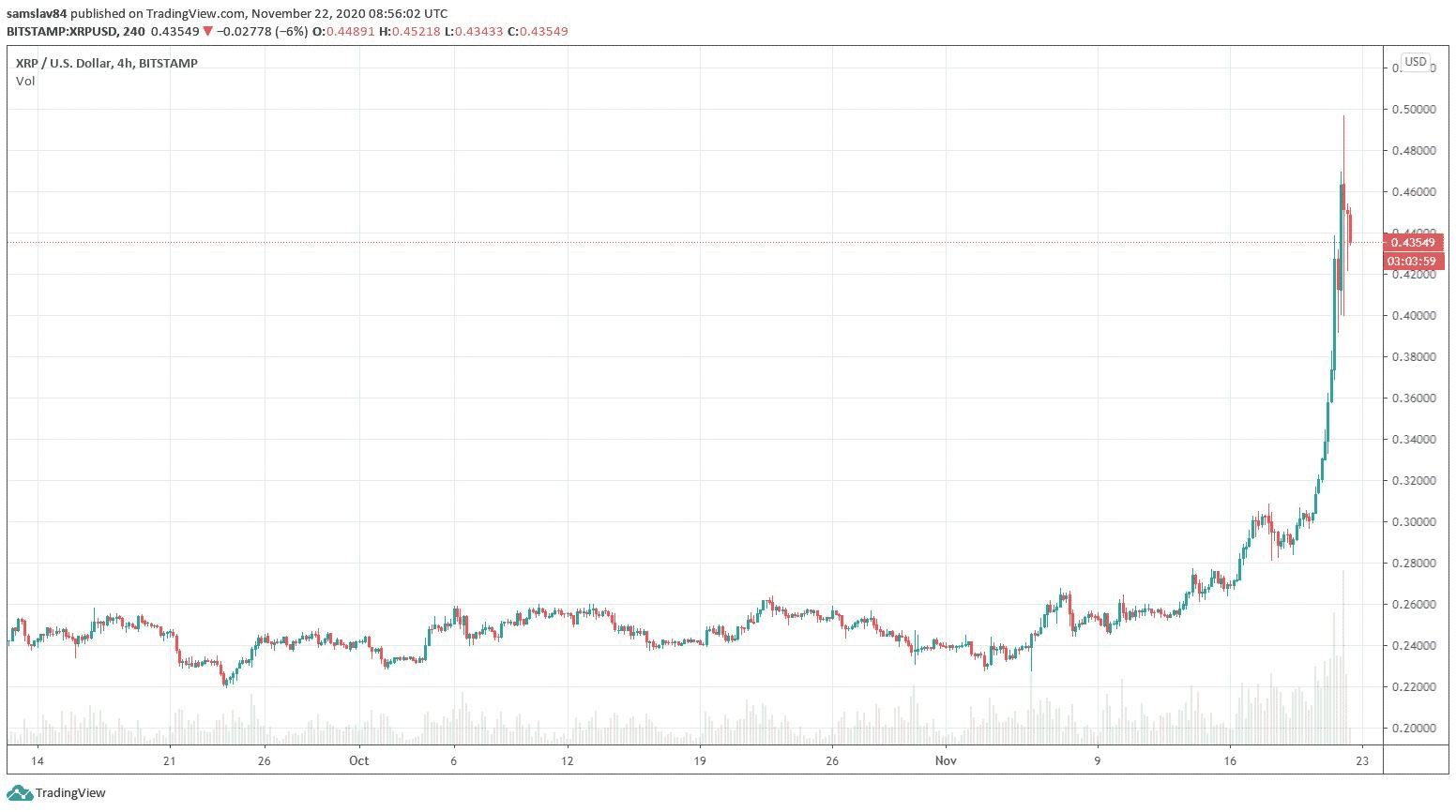 Jednu takúto pump-n-dump schému predvádza aj XRP, ktorý sme včera spomínali v našom článku o shitcoinoch. Token od spoločnosti Ripple opäť predviedol jednu zo svojich legendárnych púmp a za necelých 24 hodín spravil 50% zisk. Otestoval hodnotu 50 centov. Tak vysoko bol naposledy na začiatku leta 2019.