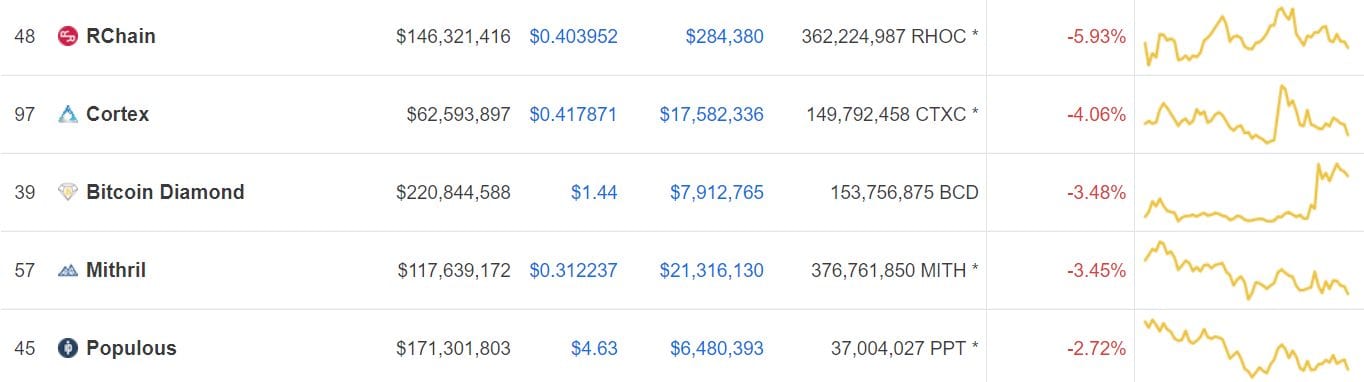Medzi dnešnými loosermi sa neprekvapivo objavil spomínaný Bitcoin Diamond. Neklesol však ani zďaleka tak hlboko, ako som očakával.