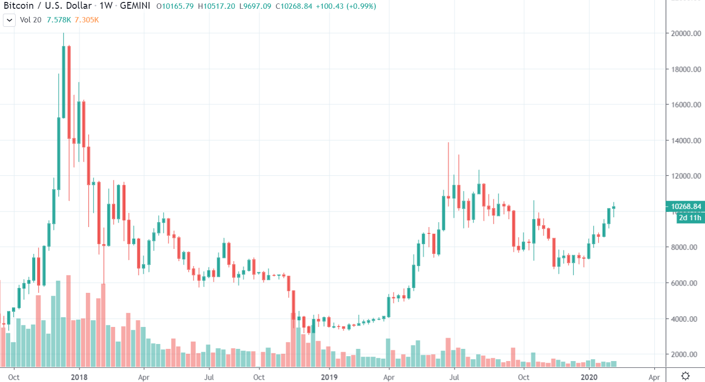 Wau, Bitcoinu už na korekciu stačí aj necelý deň. Po včerajšom prepade na 10 100 $ je späť v hre a dnes sa už obchodoval aj za 10 300 $. Môžeme teda konštatovať, že sa bez väčších problémov drží v pät-miestnych číslach a v najbližších dňoch (alebo po víkende) by mohol dobyť ďalší vrchol.