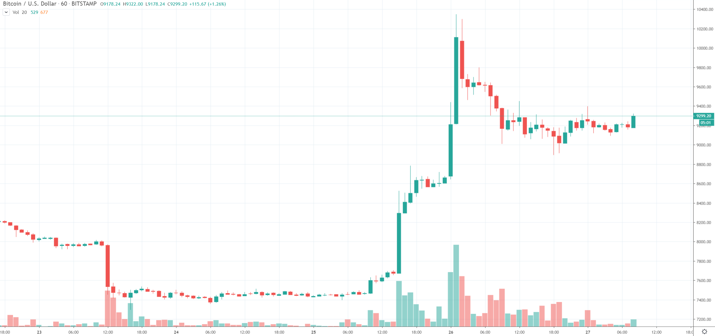 Cena Bitcoinu za posledných 24 hodín klesla o cca 2%. To je vcelku v pohode. Pred 24 hodinami sa Bitcoin už vrátil zo svojho peaku (10 500 $) a odvtedy sa pohyboval približne na súčasných hodnotách (9000 – 9400$).