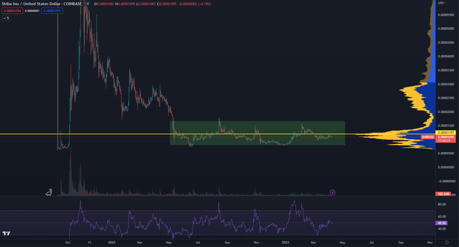 Cena SHIB sa podľa údajov z TradingView pohybuje na úrovni 0,00001095 dolára a spamätáva sa z nedávnej korekcie. Už rok sa pohybuje bokom, pričom vytvára vyššie minimá a nižšie maximá. To hovorí o postupnom akumulovaní mincí.