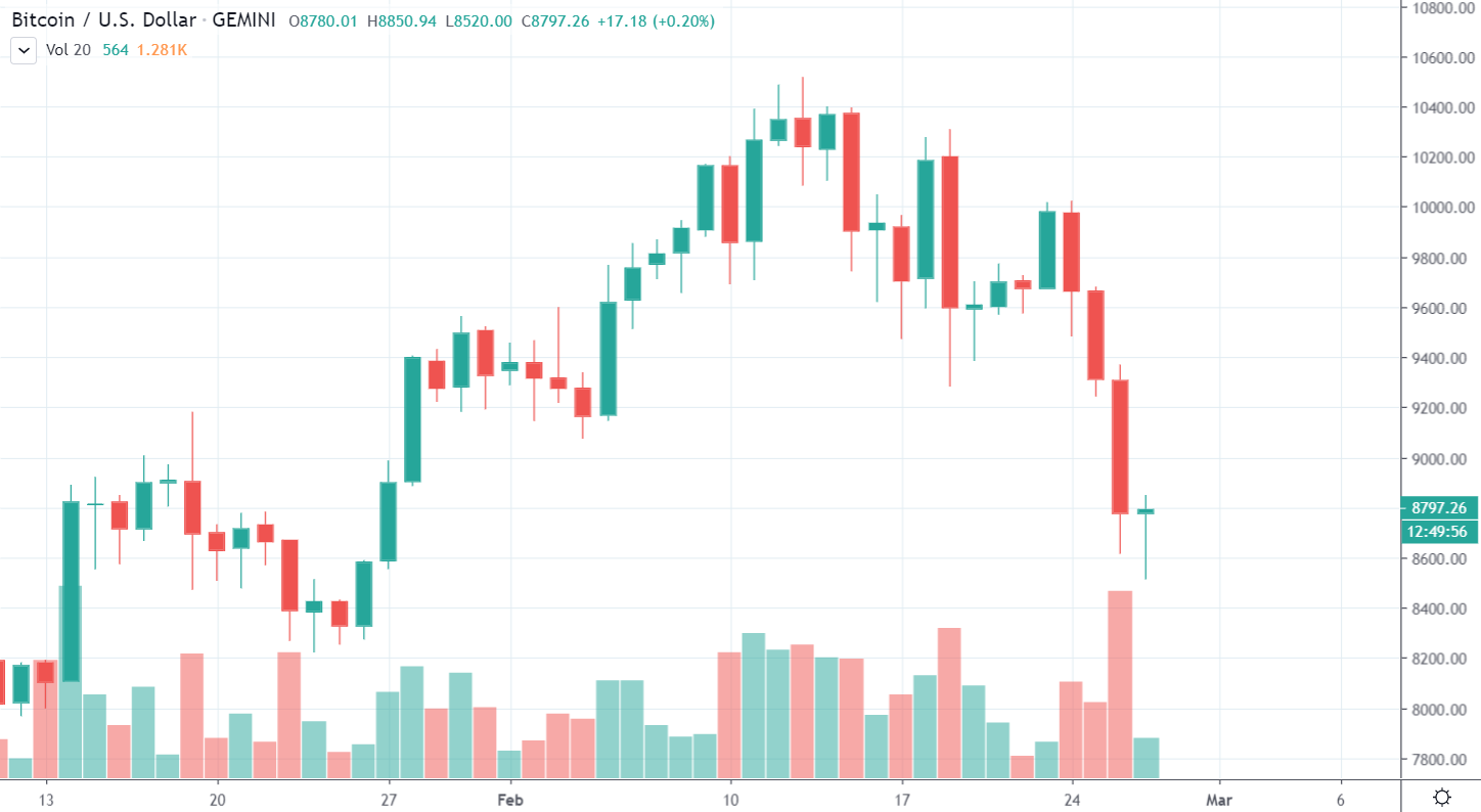 Iste ste už postrehli, že Bitcoin včera večer predviedol ďalší pekný dump. Prepadol sa až na 8600$ a dnes dosiahol nové low na 8500 $. Aktuálne sa už síce o pár stoviek vrátil, no dnešný týždeň môžeme aj tak označiť za najväčší weekly prepad tohto roka.