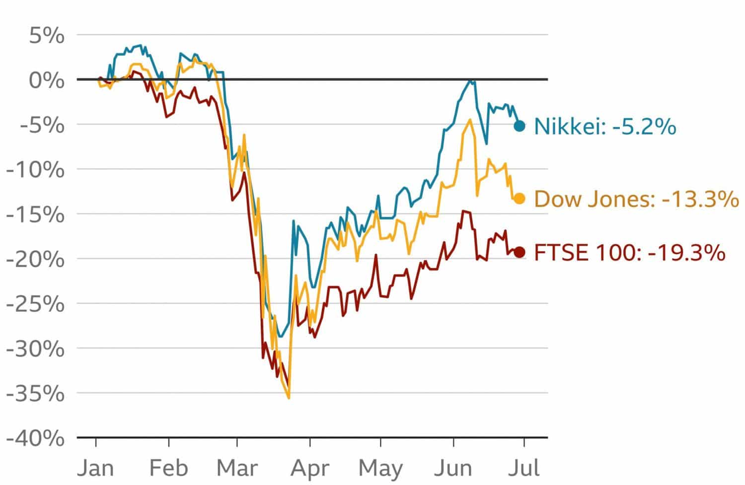 Veľké pohyby na akciových trhoch ovplyvnia hodnotu dôchodkov alebo individuálnych sporiacich účtov (ISA). FTSE, Dow Jones Industrial Average a Nikkei zaznamenali obrovské poklesy. Dow a FTSE zaznamenali najväčšie štvrťročné poklesy za prvé tri mesiace od roku 1987.