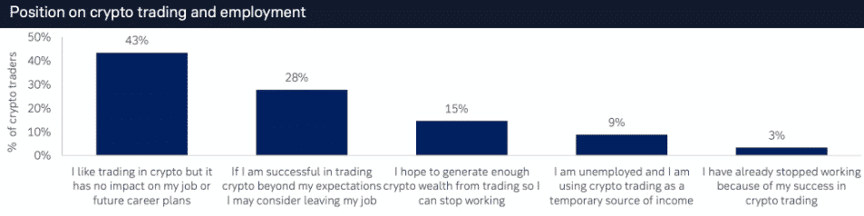 Dokonca aj na extrémne medveďom kryptomenovom trhu menej ako polovica obchodníkov (ktorí tvoria viac ako 35 % opýtaných) uviedla, že znížia svoje obchodovanie. Navyše, viac ako 70 % plánuje zvýšiť (výrazne alebo mierne) svoju aktivitu v nasledujúcich šiestich mesiacoch.