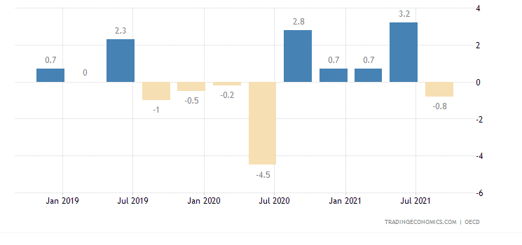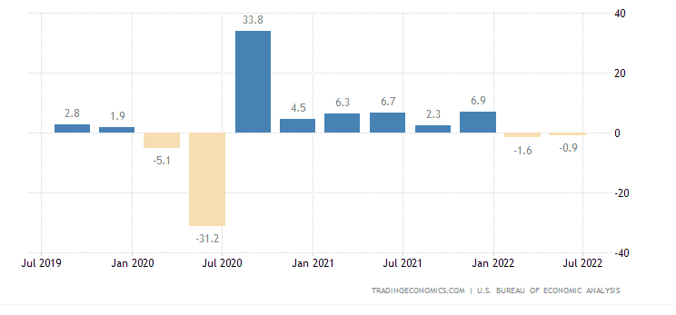 Ruská ekonomika v prvom kvartáli roku stúpla o 3,2 %, v druhom klesla o 0,8 %. Americká ekonomika v dvoch kvartáloch po sebe klesla o 1,6 % a 0,9 %. Keďže ide o najväčšiu ekonomiku sveta, pokles sa dal očakávať, hoci v prípade Ruska a sankcií by sa očakával väčší a rýchlejší ekonomický prepad (pozri grafy nižšie).