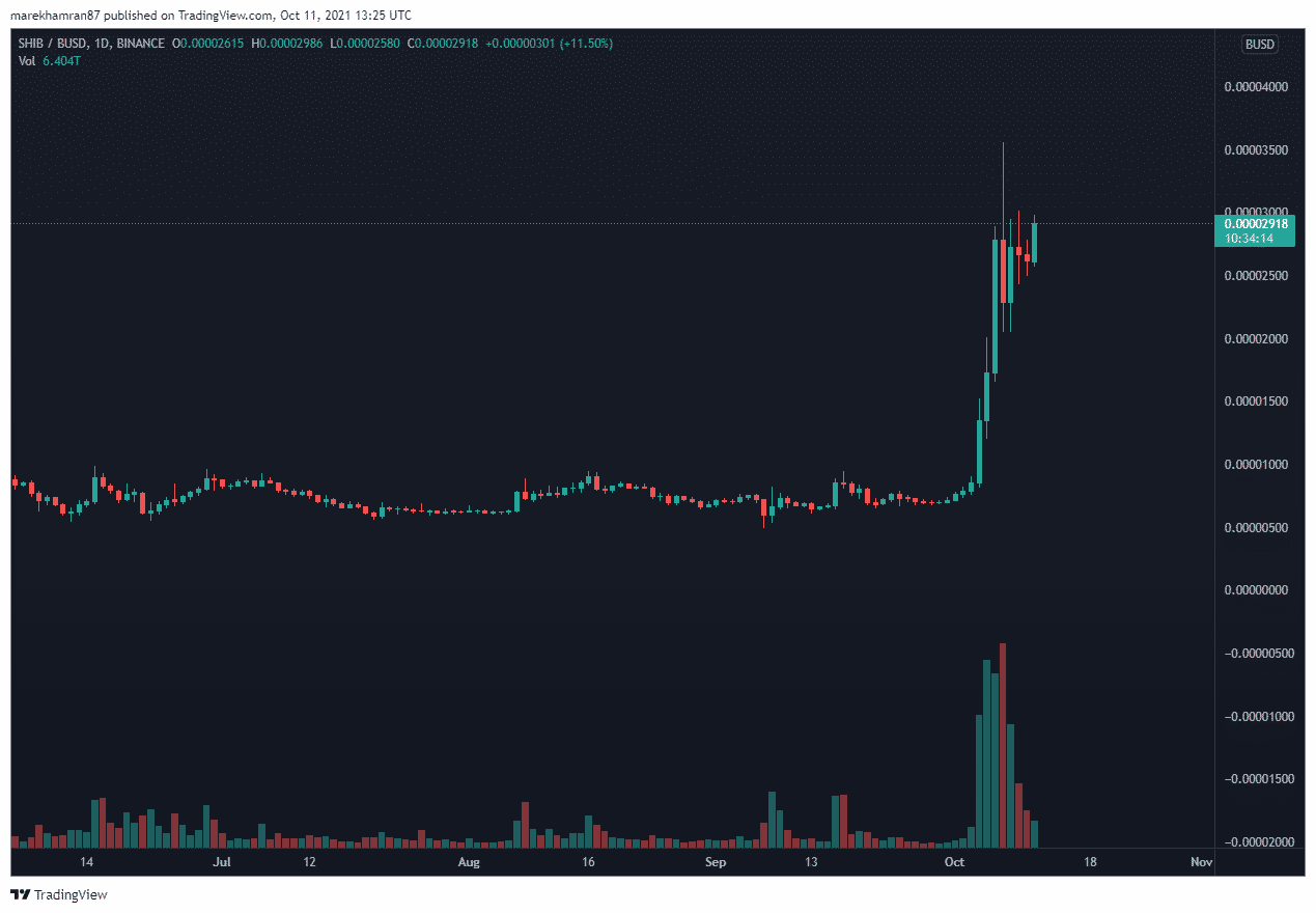 V čase písania tohto článku sa token SHIB pohyboval na úrovni 0,00002923 USD, čo predstavuje denný nárast o viac ako 11 %. Objemy však výrazne klesli. Je teda veľmi otázne, čo očakávať od tohto nevyspytateľného projektu.