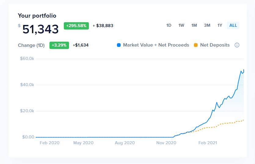 Keď som ešte v závere minulého roka začínal s účtom, kde bolo 1 000 USD, tak by som si ani v sne nepovedal, že už o 4 mesiace tam bude 50-násobne viac. Samozrejme je to hlavne vďaka rastu altcoinov. Avšak to, v akom stave je aktuálne trh, pre mňa nie je dôležité. Ako investor sledujem výkon svojej stratégie a účtu. Pre mňa ako kľúčový moment v rámci investovania a začiatku tejto reality show (pôvodne iba YouTube kanály) bolo zachytiť veľký bull market ešte na lokálnom dne, keď Bitcoin konsolidoval na úrovni okolo 12 000 USD. Podarilo sa naskočiť do rozbehnutého vlaku a teraz „vyberáme” zisky.
