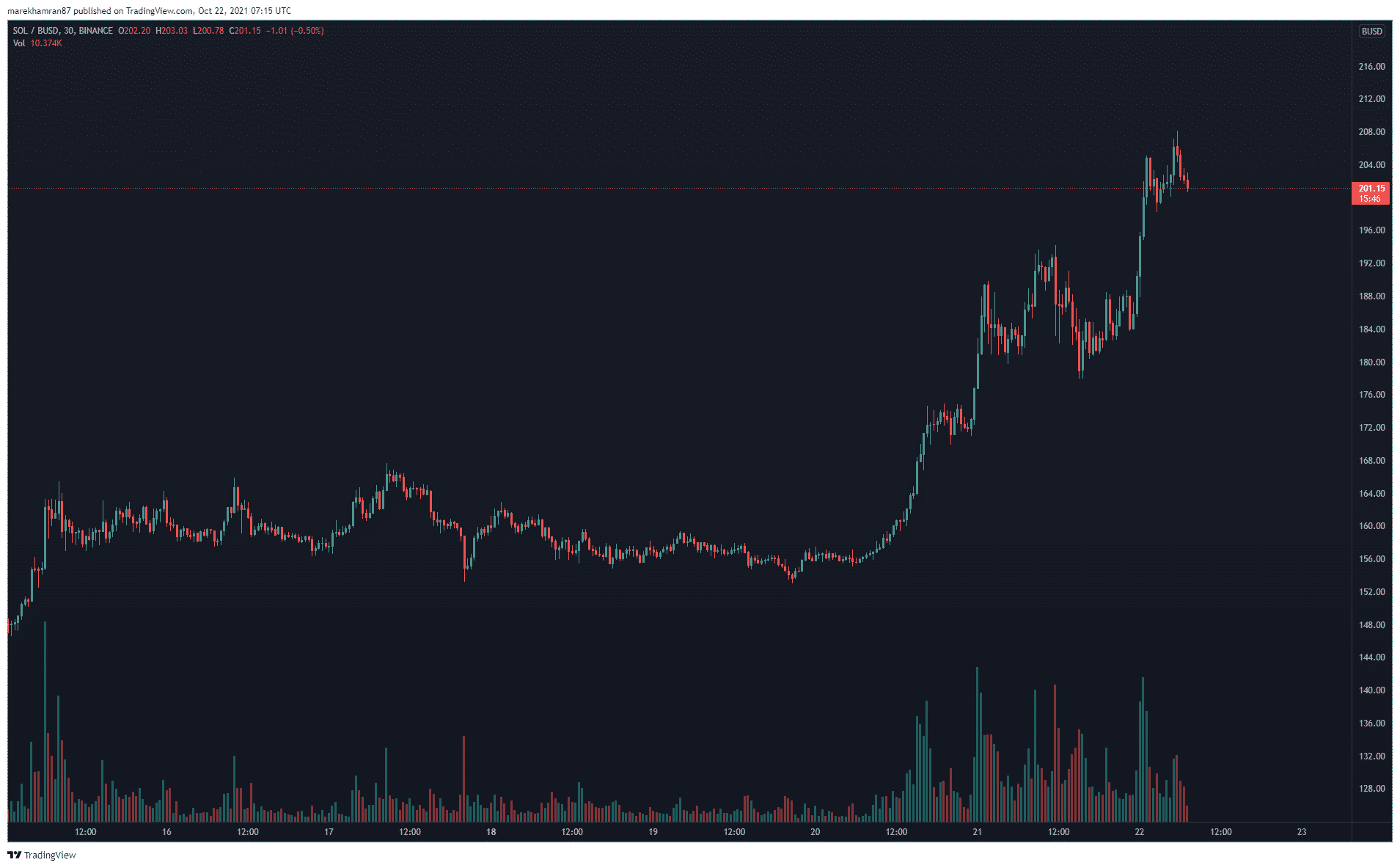 Token SOL sa aktuálne pohybuje na cenovej úrovni 202 USD. Väčšina analytikov je ohľadom tohto projektu naladená pozitívne. Ak sa boom neskončí, je možné, že sa pozrieme až na cenu 250 USD.