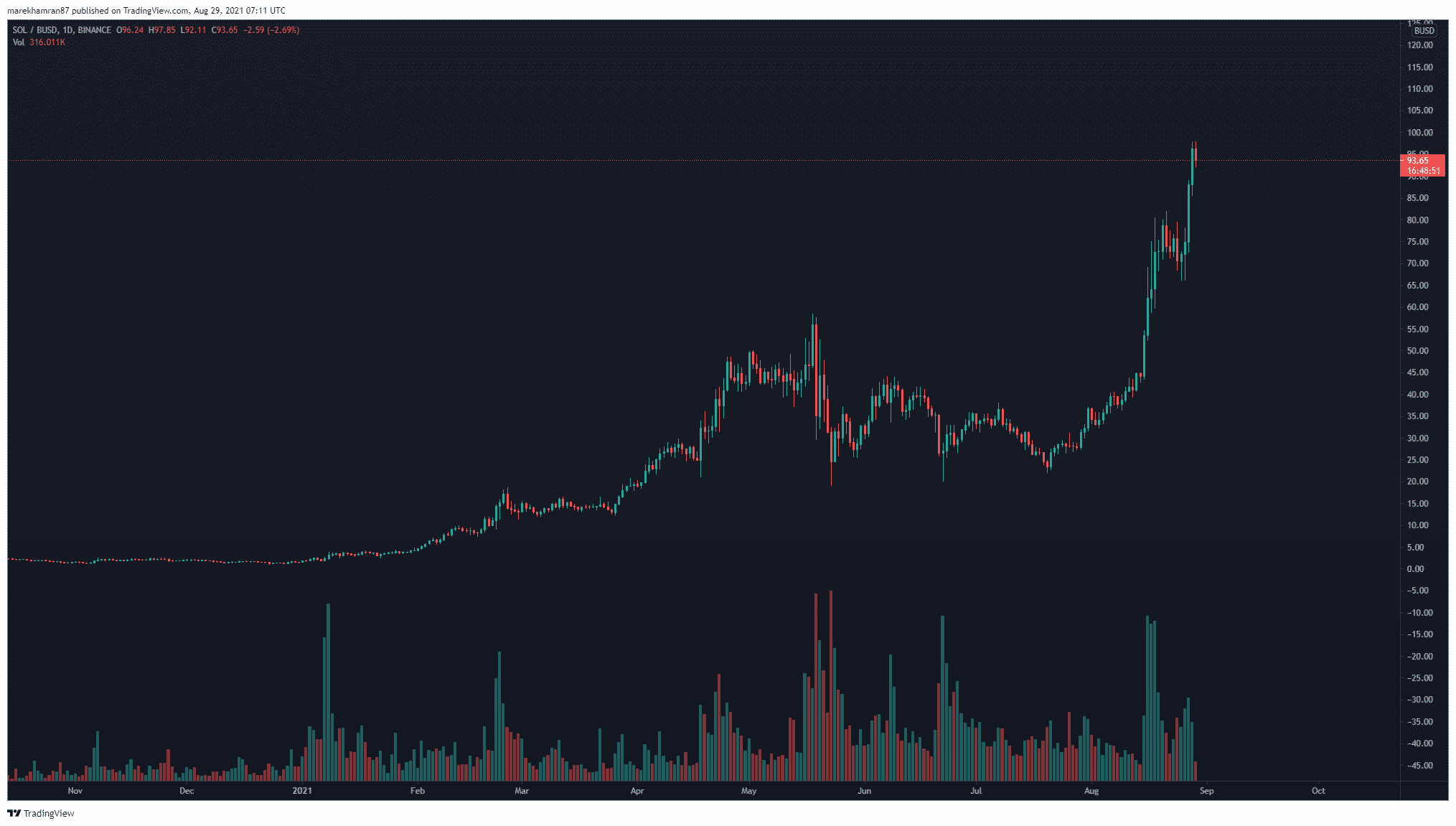 Solana je jeden z najvýraznejších projektov posledného obdobia na kryptomenovom trhu. Pokračujúci boj o dosiahnutie 100 USD presviedča stále viac a viac investorov, aby svoje prostriedky vložili do tohto perspektívneho projektu.