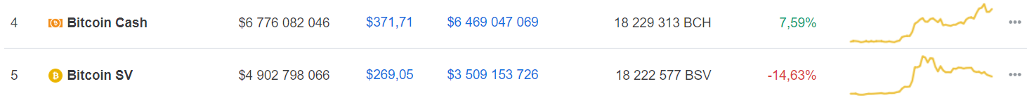 Prešli dva roky a zdá sa, že oba altcoiny fungujú veľmi dobre a ich ceny postupne rastú. Navyše, zaznamenali sme celkom zaujímavý trend. Ak rastie BSV, rastie aj Bitcoin Cash. Ak však potom BSV klesá, Bcash ide ďalej hore. Zaujímavé, však?