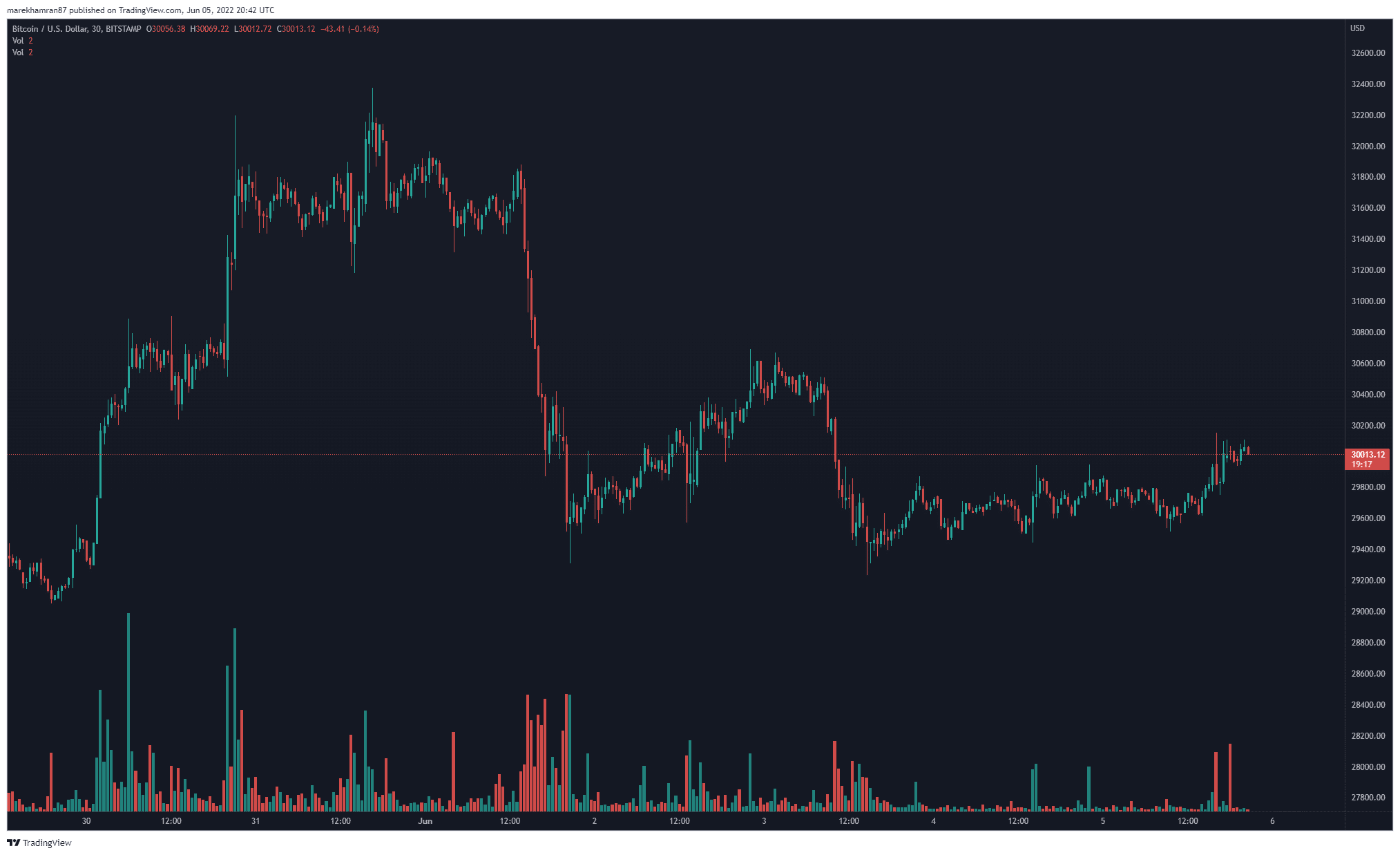 BTC/USD 30m TF. Zdroj: TradingView