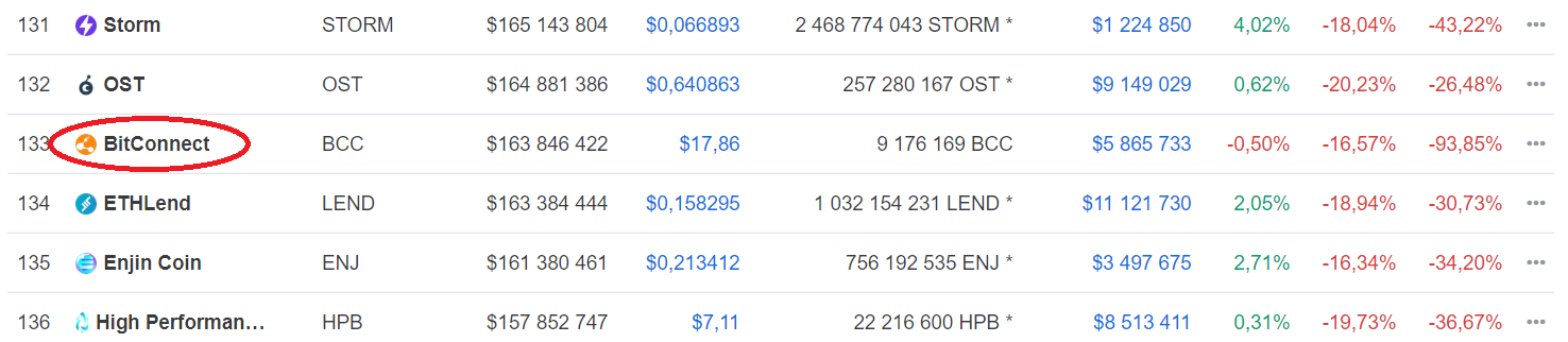 Ten deň nastal presne pred dvoma rokmi, keď Bitconnect z ničoho nič padol z 300$ takmer na nulu. Nasledovalo delistovanie z väčšiny zmenární. BCC sa potom pokúsil o posledný malý skok a o pár dní už skončil na smetisku dejín.