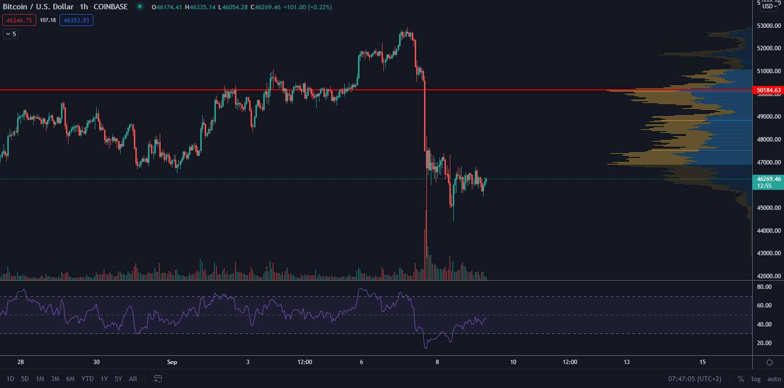 Výmenný kurz BTC voči doláru po 19 % korekcii stagnuje okolo hladiny 46 000 $. Posledných 24 hodín cena nezaznamenala takmer žiadnu zmenu. Zlato medzitým pokračuje v korekčnom legu a index dolára sa uberá smerom nahor.
