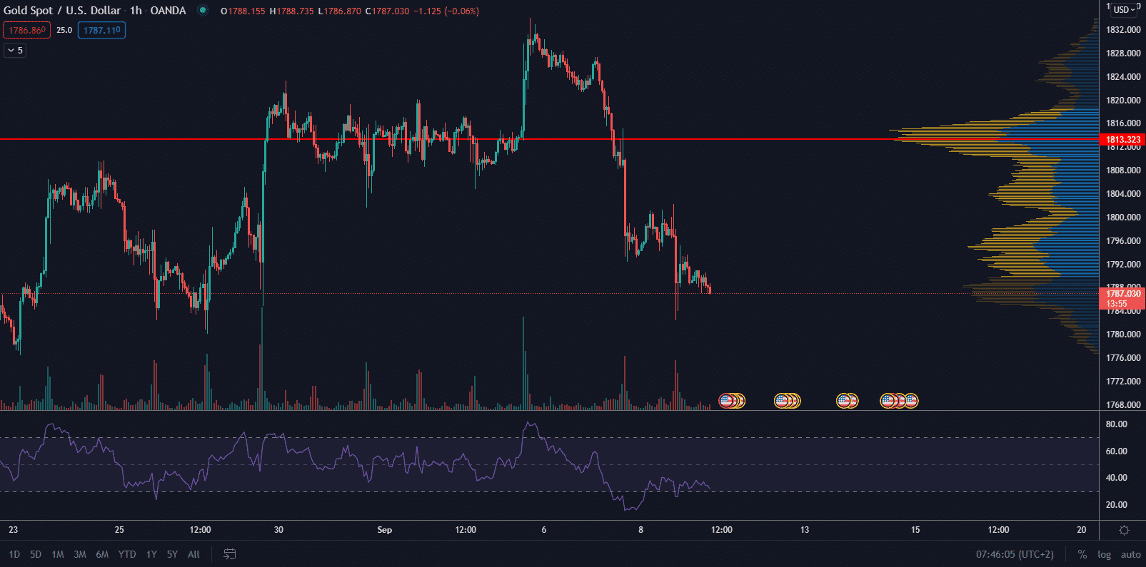 Masívny výpredaj Bitcoinov sa časovo zhodoval s nápadne podobným, ale menším poklesom konkurenčného trhu so zlatom. Podobne aj drahý kov utrpel najhorší denný pokles za mesiac v utorok. Spotové sadzby XAU/USD klesli pod 1 800 dolárov po vnútrodennom pohybe mínus 1,37 %.