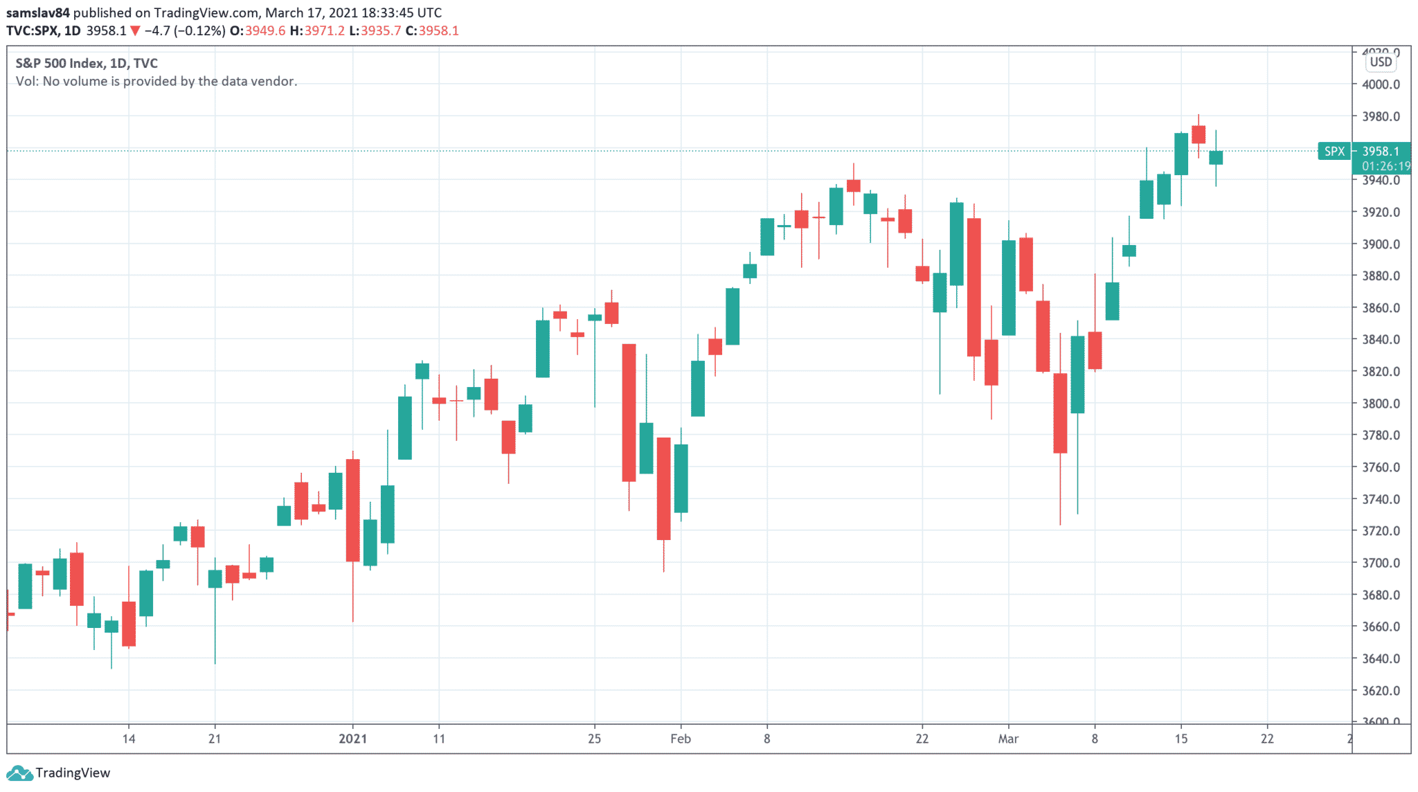 Ale pozor! Aktuálny vrchol na grafe veľmi pripomína ten februárový. Takže možno nakoniec bude všetko opäť niekoľko týždňov padať. Potom to však určite zachráni nový americký ekonomický stimulus vo výške 1900 miliárd dolárov.