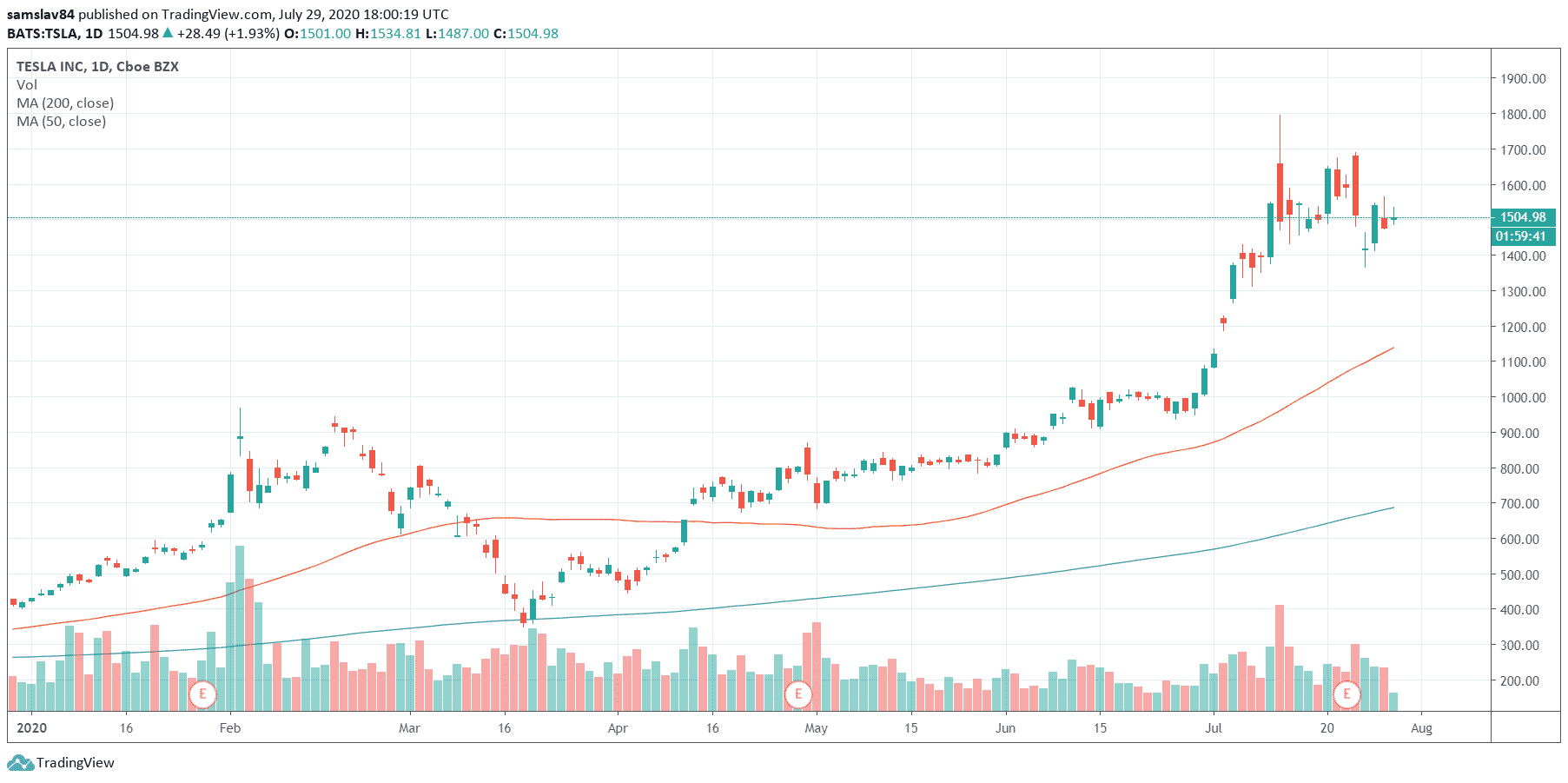 Akcie Tesly na túto informáciu zareagovali už pred dvoma týždňami a ich hodnota dosiahla historické maximum 1800 $. Aktuálne sa ich cena pohybuje okolo 1500 $