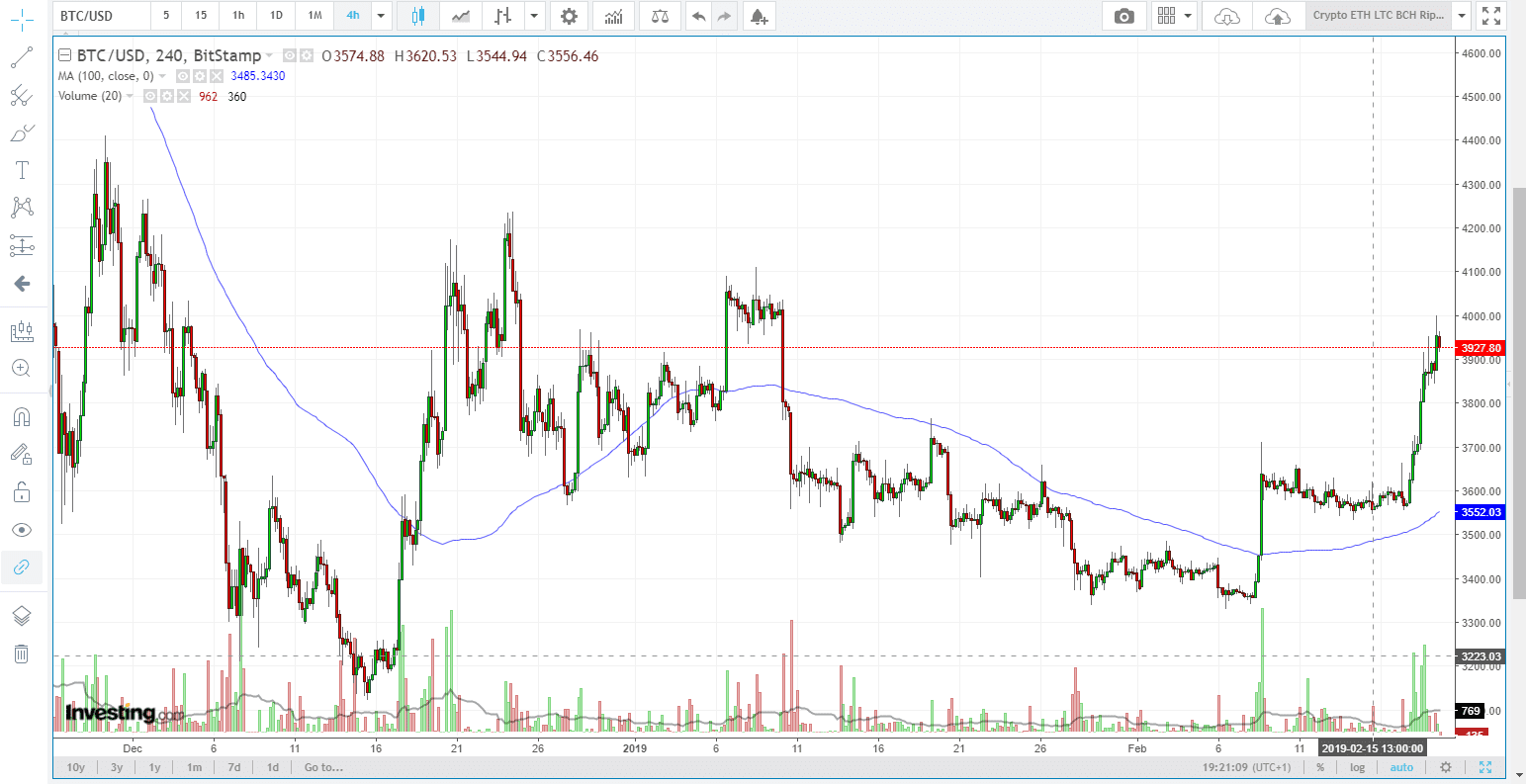 Bitcoin rally práve prešlo ďalším míľnikom, keď sa vlajková loď kryptomien dotkla ceny 4 000 dolárov za viac ako mesiac. Krátko po 14:40 UTC spôsobil jeden alebo viacero veľkých nákupných príkazov nárast ceny Bitcoinu, čo mu umožnilo dotknúť sa úrovne 4 000 dolárov a vrátiť sa na súčasnú hodnotu 3 955 dolárov na Bitstampe.