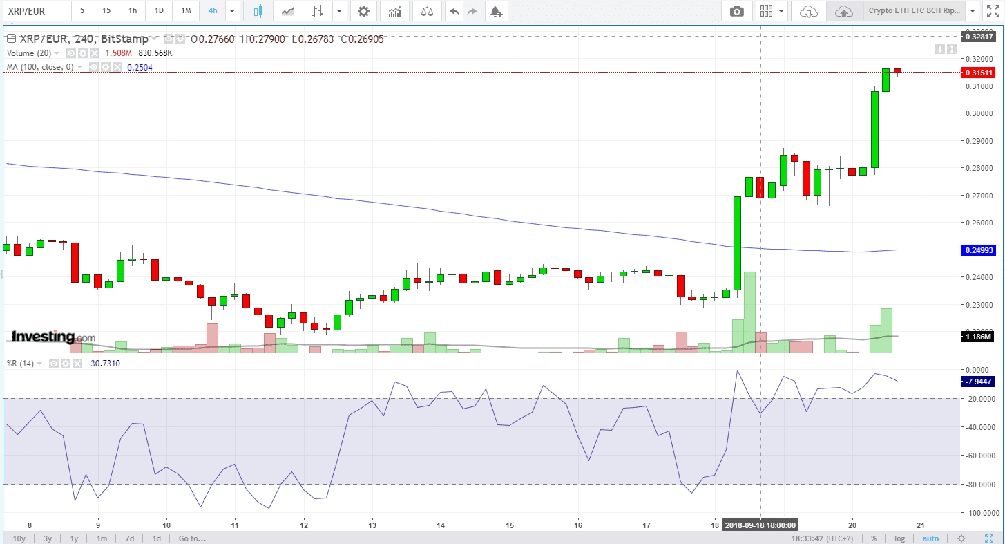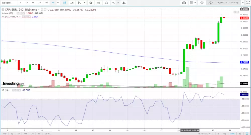 Po dlhej dobe spôsobili pozitívne správy rast kryptomeny. Cena Ripple vzrástla za dva dni o 35%.