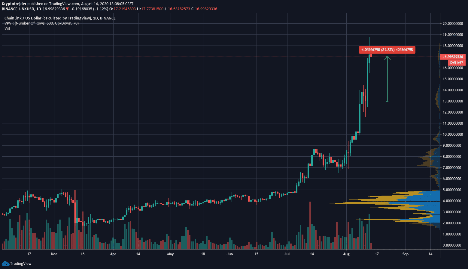 Chainlink (LINK) bol jedným z najvýkonnejších krypto aktív za posledných niekoľko týždňov a mesiacov. Altcoin na báze Etheru za posledné 3 dni narástol až o viac ako 30 %, čo predstavuje hodnotu 17 dolárov. Mnoho investorov sa však obáva konkurencie a rizika bubliny.