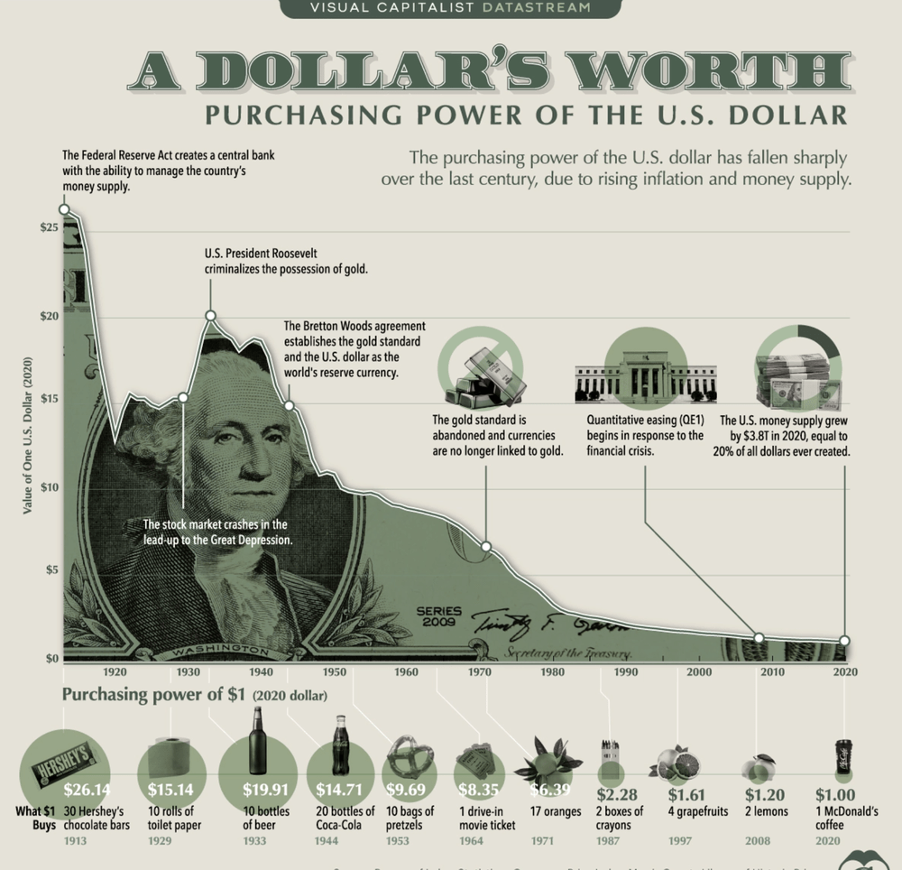 Napriek postaveniu dolára jeho hodnota z roka na rok upadá. Podľa poslednej správy, americký dolár stratil od roku 1971 až 98 % kúpyschopnosti. Netýka sa to ale iba dolára, keďže ďalšie meny taktiež nie sú kryté a ich vnútorná hodnota predstavuje iba dôveru ich držiteľov.