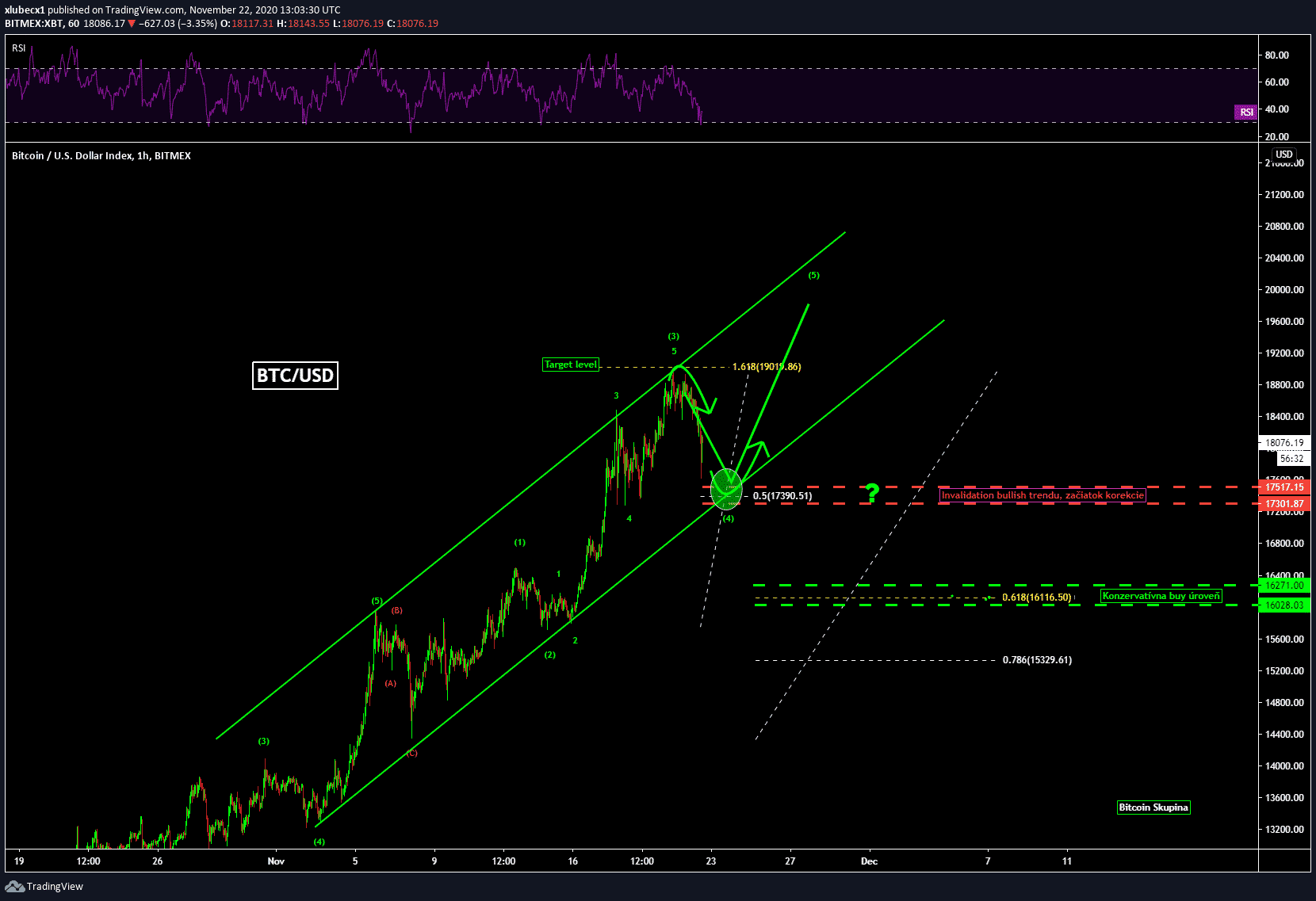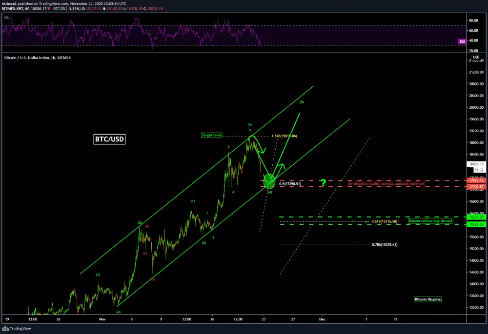 Dnešný prepad Bitcoinu samozrejme nemusí znamenať nič vážneho. V čase písania článku na tomto aktíve ani zďaleka nie je ohrozený dlhodobý bullish trend. To by sme museli na pár dní klesnúť hlboko pod 17 000 USD. Bearish pohyb môžeme využiť na otvorenie obchodu na férovej hladine, konkrétne na golden ratio. O celom obchodom systéme sa budeme baviť zajtra na streame.
