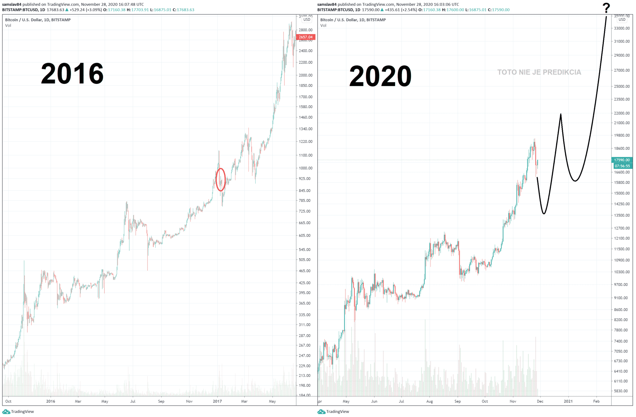 Pravdou je, že ešte stále sme iba na začiatku. Podobne, ako to bolo v decembri 2016 (viď graf hore). Ak teda chcete nastúpiť na samom začiatku, máte skvelú príležitosť. Ale pozor! Aj v tom najväčšom bullrune trh s kryptomenami zvykne robiť náhle pohyby smerom dole. Prepady o 30 – 40% v minulosti neboli ničím výnimočným. Nenechajte sa zmiasť krátkodobými pohybmi a pri investovaní s nimi počítajte.