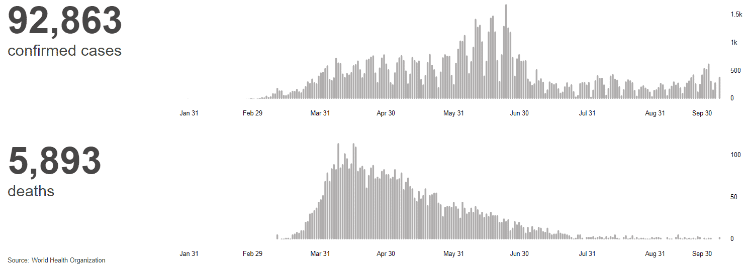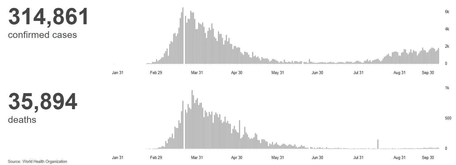 Nuž, musíme dodať, že Švédsko to v posledných mesiacoch nemalo ťažké. Počas leta v tejto krajine mali denne viac prípadov, než na jar. Potoms a však situácia upokojila a zatiaľ čo celý svet prežíva druhú vlnu pandémie, vo Švédsku počet prípadov donedávna klesal, i keď počas posledného septembrového týždňa jemne vzrástol.
