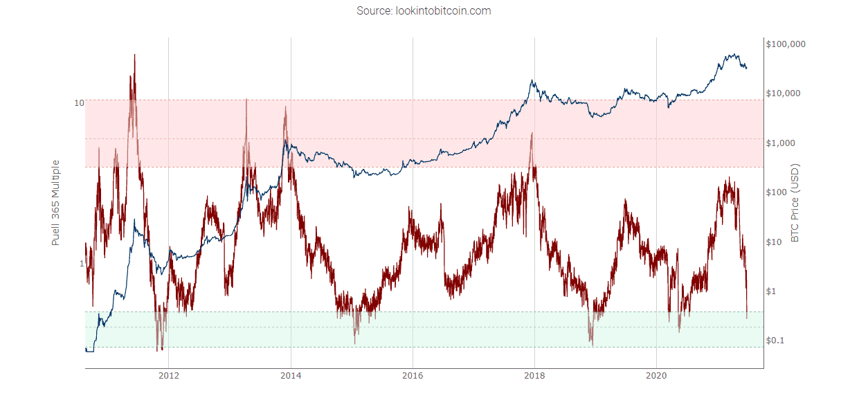 Puell multiple patrí k pomerne dosť známym a dôveryhodným indikátorom v krypto svete s vysokou úspešnosťou. V minulosti dal zatiaľ iba 4 bullish signály a hneď po nich Bitcoin začal rásť. Bude tomu aj tento krát?