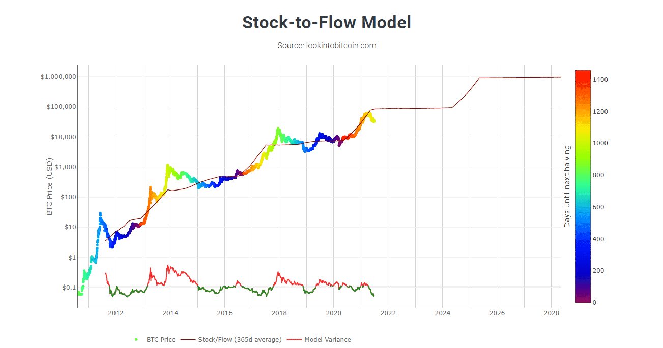 Dosť veľkú odchýlku smerom nadol má aj známejší S2F indikátor, podľa ktorého by priemerná cena Bitcoinu počas tohto roka sa mala pohybovať na úrovni okolo 80 000 USD. Samozrejme môže to byť niekedy viac a niekedy aj menej. Bitcoin je veľmi volatilne aktívum a určite cena nepôjde presne podľa odhadov indikátora. Horšie je na tom to, že sa cena aktuálne ani zďaleka v rámci maximálnych hodnosť nepribližuje k 80 000 USD, nie to ešte priemerným. Zostáva nám len dúfať, že sa nezačal bear market a cena bude čoskoro znovu rásť.