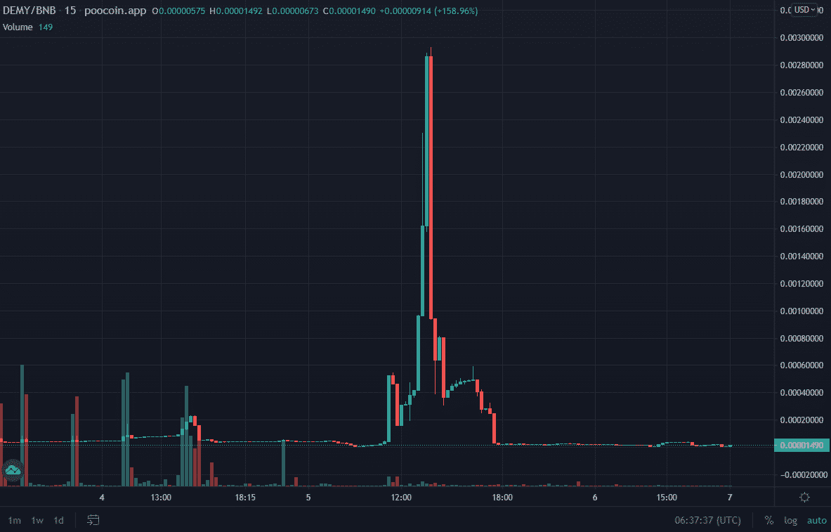 DEMY/BNB. Zdroj: Poocoin.app